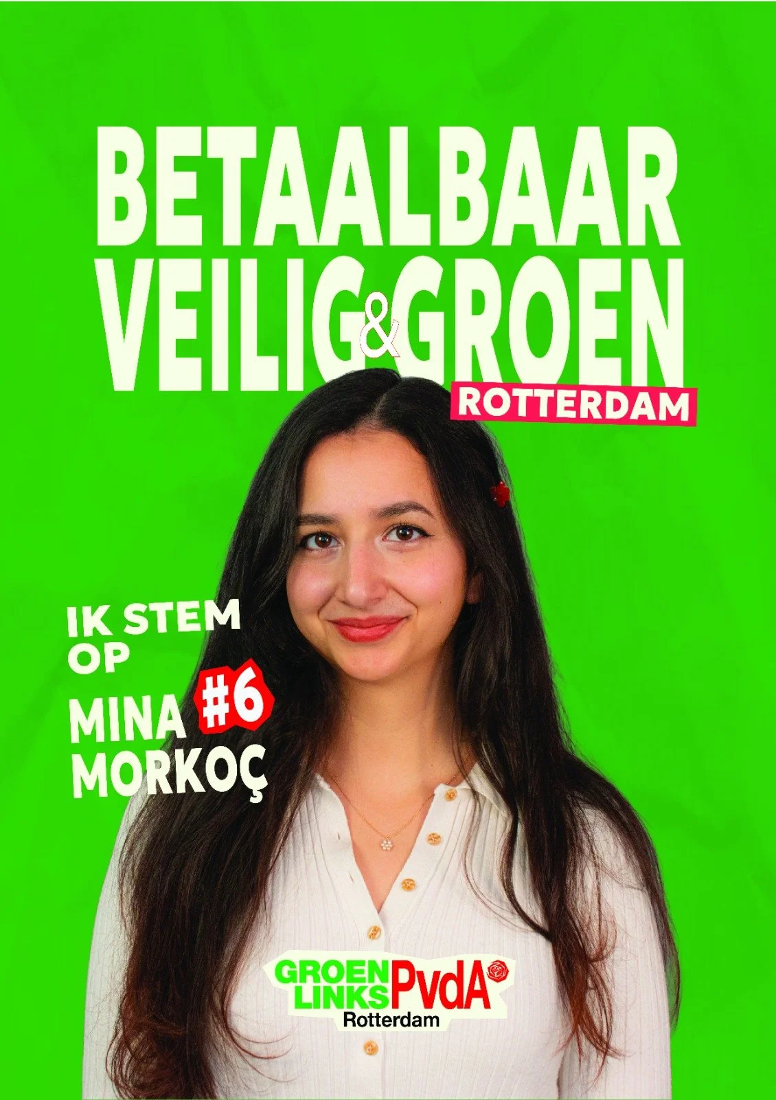 Hoi! Ik ben Mina en sinds mijn 18e ben ik actief in de lokale politiek van mijn favoriete stad. Hier in Rotterdam ben ik opgegroeid en hier wil ik mij blijven ontwikkelen. Daarom studeer ik aan de Erasmus Universiteit Rotterdam en zet mij in voor mijn mede studenten.
